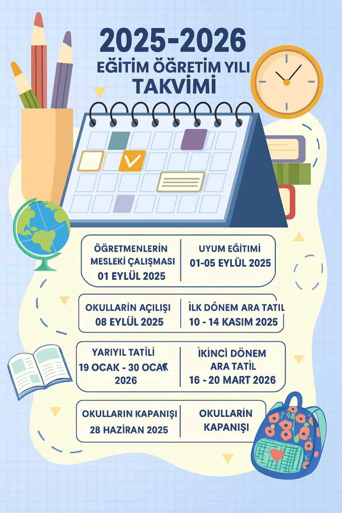 Tüm illere gönderilen “2025-2026 Eğitim ve Öğretim Yılı Çalışma Takvimi” genelgesi ile yeni dönemin başlangıç ve tatil tarihleri açıklandı.