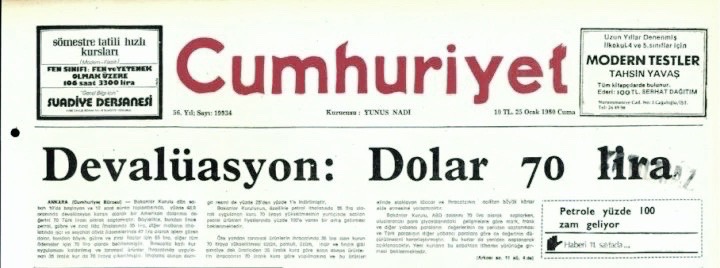 Devalüasyon: Türk Lirası, ABD Doları karşısında %32,7 oranında devalüe edildi (1 Dolar 35 TL’den 47,1 TL’ye çıkarıldı).