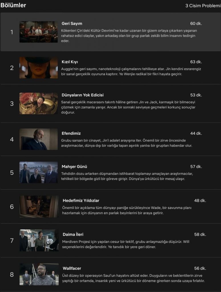 Cixin Liu’nun Dünyanın Geçmişi Üçlemesi kitapları dizi olarak 21 Mart 2023 tarihinde Netflix tarafından izleyicilere sunuldu.