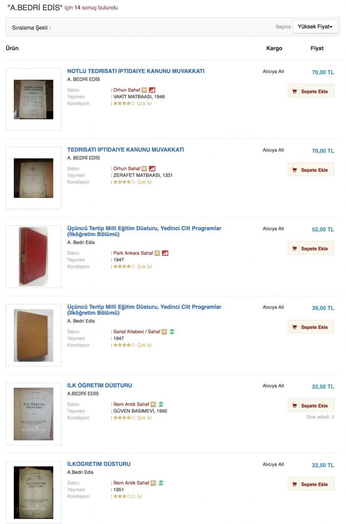 İkinci el kitap sitesinde dedemle ilgili kitaplar.