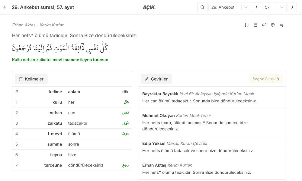 Eğer siz de Kuran metinlerini derinlemesine incelemek ve farklı çevirileri karşılaştırarak kendi analizlerinizi yapmak istiyorsanız, AçıkKuran.com sizin için vazgeçilmez bir rehber olacaktır.