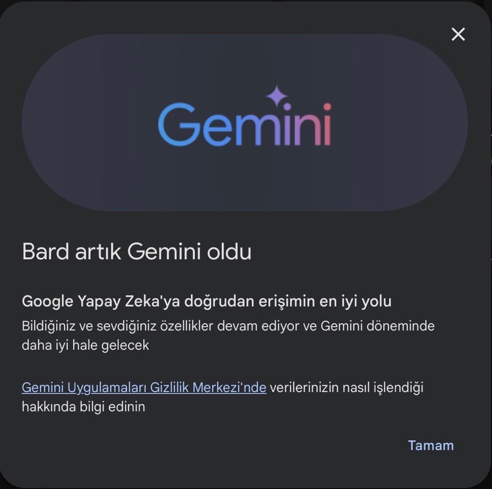 - Neden: Herkese Google Yapay Zeka'ya doğrudan erişim olanağı sunmaya kararlıyız. Bu hafta itibariyle, desteklenen ülkelerdeki ve dillerdeki tüm Gemini kullanıcıları Google'ın en iyi yapay zeka modelleri ailesine erişebiliyor. Bu kararlılığımızı göstermek adına Bard'ın adını Gemini olarak değiştirdik.