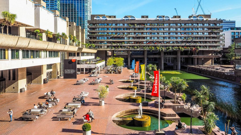 The Barbican Centre - Londra, İngiltere: Chamberlin, Powell ve Bon tarafından tasarlanan bu çok amaçlı kompleks, 1982 yılında tamamlanmıştır. Karmaşık beton yapıları, kültürel etkinlikleri, konutları ve sanat galerilerini içerir.