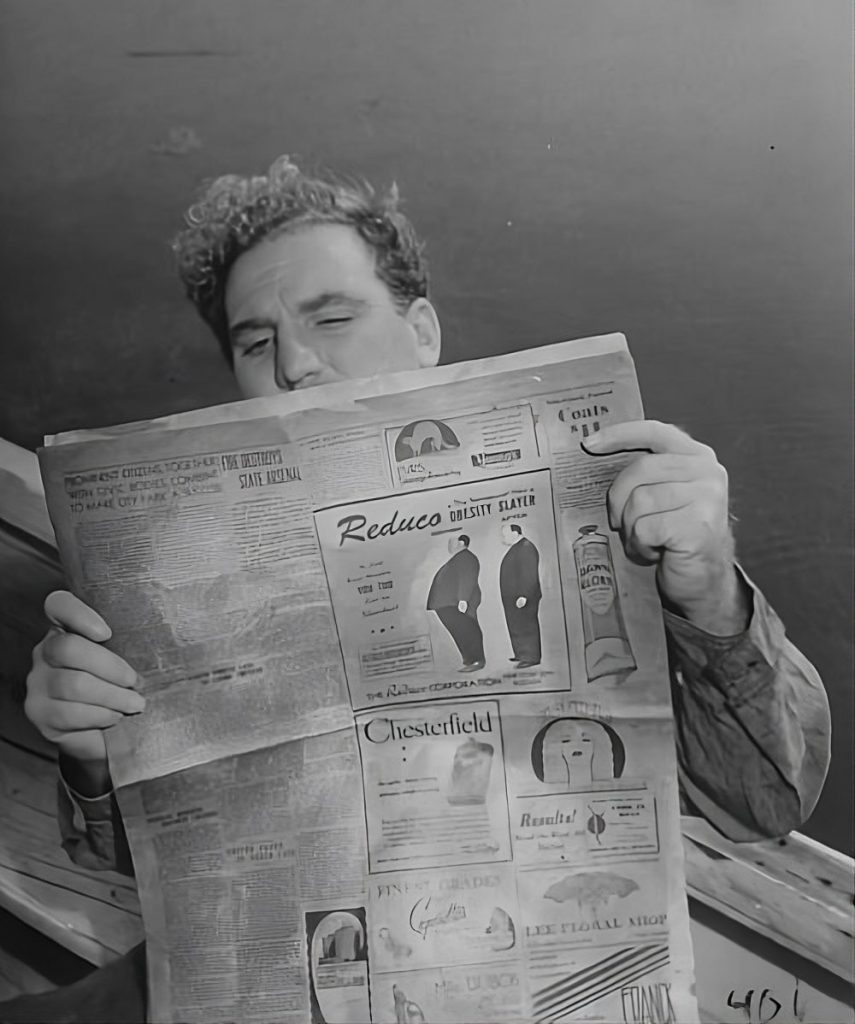 | 1944 | Yaşamak İstiyoruz (Lifeboat) | Gazetedeki zayıflama reklamındaki fotoğraf | 25. dakika |