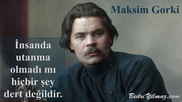 İnsanda utanma olmadı mı hiçbir şey dert değildir. Maksim Gorki(Ekmeğimi Kazanırken, sf. 82) Views: 29