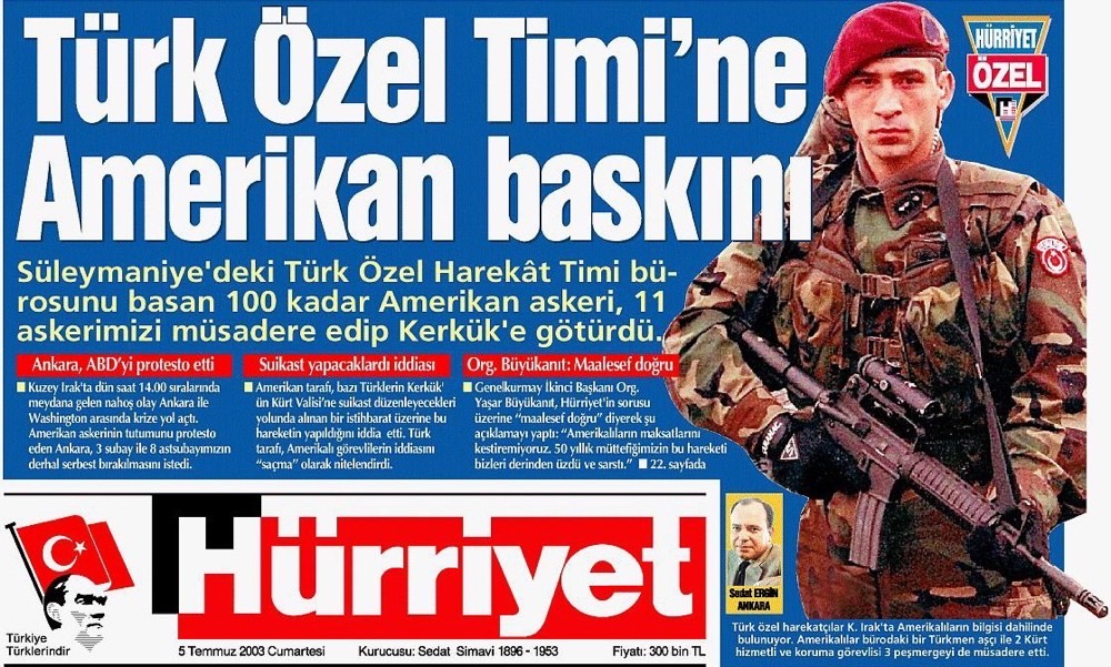 Çuval Olayı, 4 Temmuz 2003’te Amerikan 173. Hava İndirme Tugayı’nın Türk askeri karargâhına sürpriz bir baskın düzenleyerek askerleri gözaltına almasıyla başlamıştır. Olayda, Türk askerlerinin başlarına çuval geçirilmiş, 60 saat boyunca gözaltında tutulmuşlardır. Bu süre zarfında Amerikalı askerlerin, Türk askerlerine yönelik küçültücü ve provokatif tavırlar sergilediği iddiaları olayın Türkiye’de daha büyük bir yankı uyandırmasına neden olmuştur. Amerikalı yetkililer, baskının gerekçesi olarak Kerkük'teki bir Kürt yetkiliye suikast girişimi olduğu iddialarını öne sürmüş, fakat bu iddialar doğrulanamamıştır.