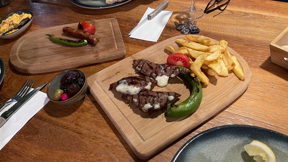 Restoranın menüsünde, dana bonfile, antrikot, kuzu T-bone, pirzola gibi etlerin yanı sıra, özel reçeteleri ile hazırlanmış köfteler ve kebaplar da yer alıyor.