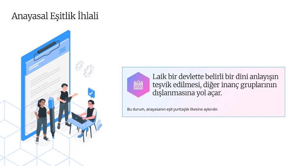 Laik bir devlette belirli bir dini anlayışın teşvik edilmesi, diğer inanç gruplarının dışlanmasına yol açar.