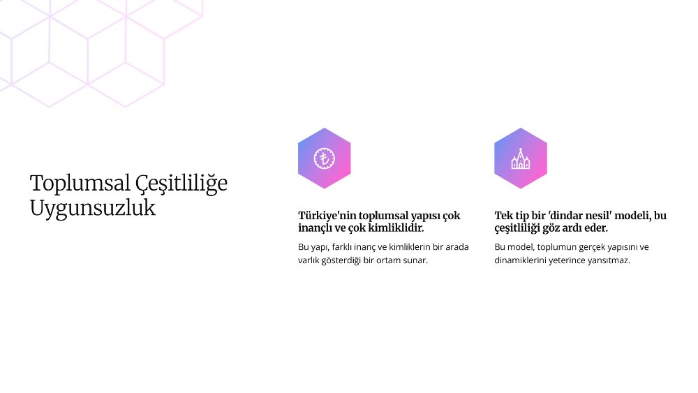 Eğer “dindar nesil” söylemiyle kast edilen yalnızca Müslüman inanç sistemine dayalı bir eğitim ve değerler manzumesi ise, bu durumda Türkiye Cumhuriyeti vatandaşı olan Hristiyan, Musevi, Ezidi, Bahai, Süryani gibi diğer din mensupları ve Alevi inanç topluluklarının dışlanması anlamına gelir. Bu durum, yalnızca bir inanç grubunun değil, tüm toplumsal kesimlerin eşit vatandaşlık haklarına gölge düşürmektedir. Çünkü Türkiye, sadece bir mezhebin veya inanç biçiminin değil, Osmanlı'dan miras kalan çok inançlı, çok kimlikli, çoğulcu bir toplumsal dokuya sahiptir.