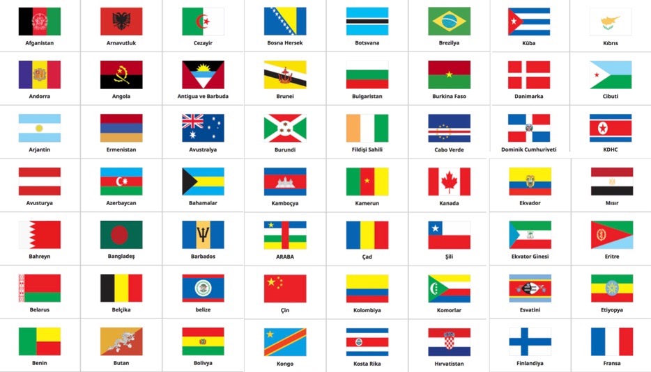 Bu linkten dünya üzerindeki tüm ülkelerin bayraklarına ulaşabilirsiniz.