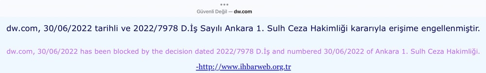 Deutsche Welle (kısaca DW), Almanya'nın Bonn ve Berlink entlerinden yurt dışına 30 farklı dilde radyo, televizyon ve internet üzerinden yayın yapan medya kuruluşu olan DW.com internet sitesi iki seneden fazla Türkiye’de yasaklı.
