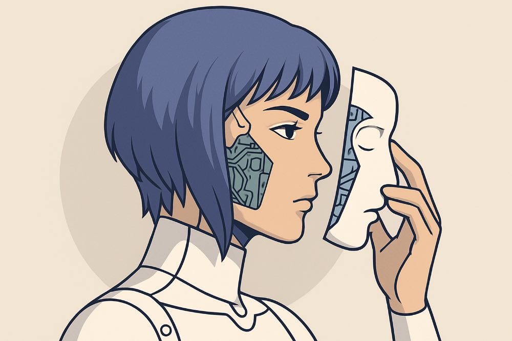 Eserin başkahramanı Binbaşı Motoko Kusanagi’nin bedeni tamamen yapaydır; beyni bile büyük ölçüde dijitalleştirilmiştir. Ancak o hâlâ kendisini düşünen, sorgulayan, hisseden bir birey olarak tanımlar. Hatta film boyunca en çok sorduğu sorulardan biri şudur: “Ben gerçekten var mıyım, yoksa yalnızca çok iyi programlanmış bir yanılsama mıyım?”