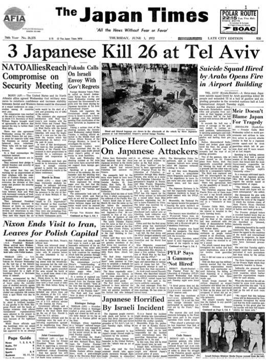 - 1970 yılında Lod Havalimanı'nda İsrailli yolcuları rehin alan ve 24 kişiyi öldüren saldırı.