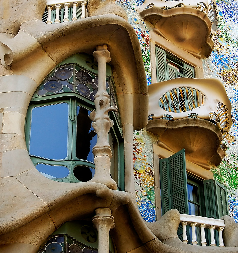 Gaudi'nin en ünlü eseri olan Sagrada Família, 1882 yılında inşaatına başlanmış ancak Gaudi'nin ölümü üzerine halen tamamlanamamış bir bazilika ve kilisedir. Gaudi, diğer önemli yapılarının yanı sıra Park Güell, Casa Batlló, Casa Milà (La Pedrera) ve daha pek çok önemli yapıyı da tasarlamıştır. Bu yapılar, özgün mimari tarzı ve dikkat çekici süslemeleri ile tanınmaktadır.