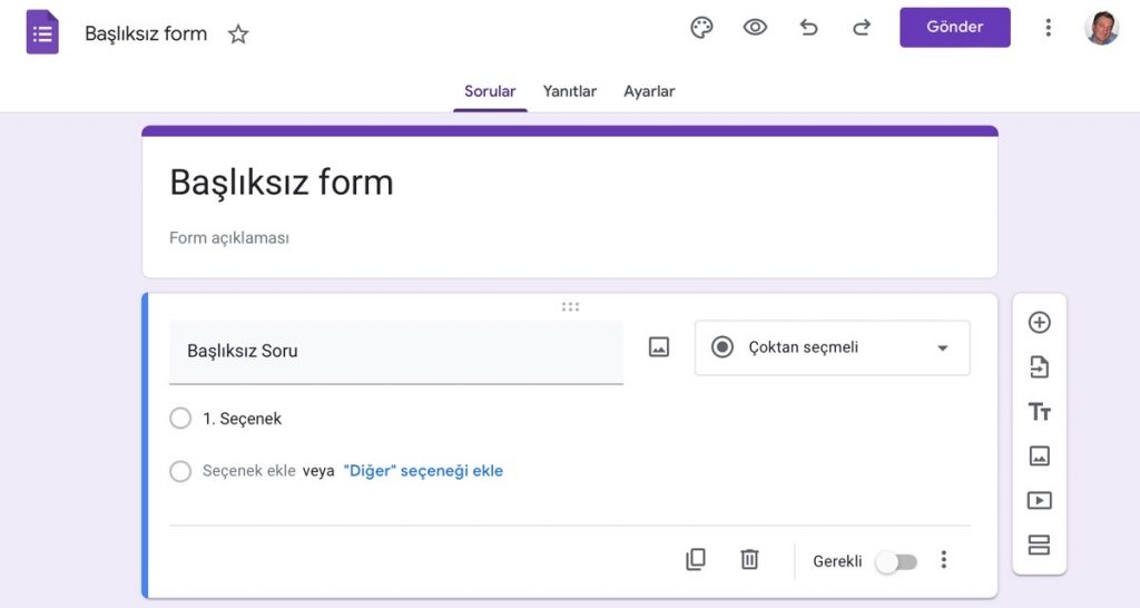 Yeni bir form oluşturduğunuzda, önce formunuza bir başlık ve açıklama eklemeniz gerekir. Ardından, formunuza sorular eklemeye başlayabilirsiniz.