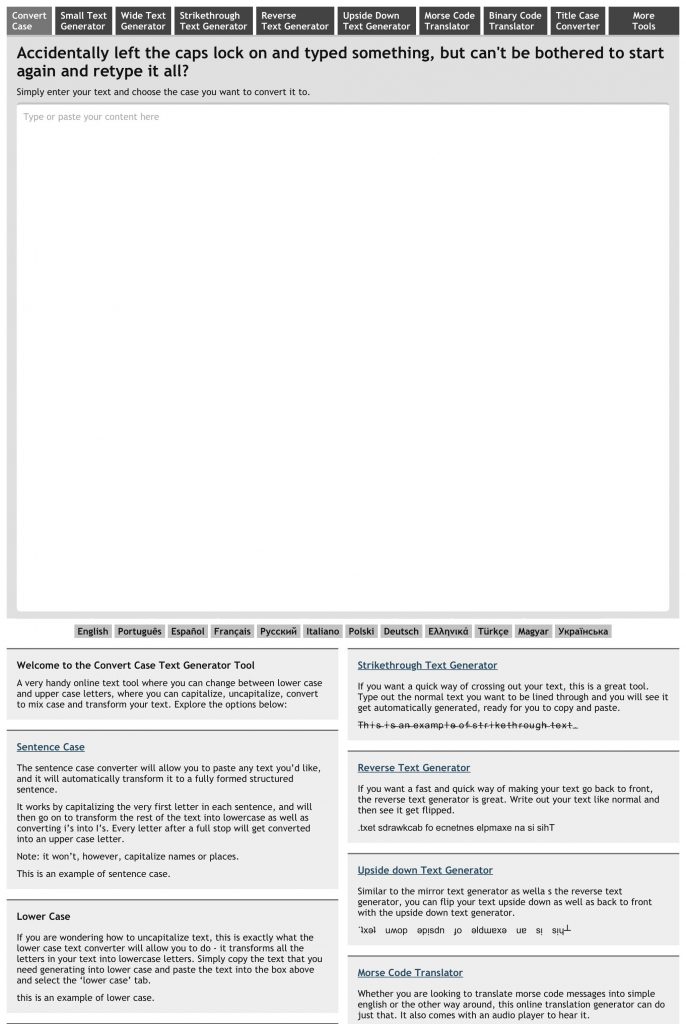Yazdığınız yazının büyük harf, küçük harflerle yazılmasının farketmeksizin düzeltmesini sağlayan online hizmet veren bir internet sitesidir.