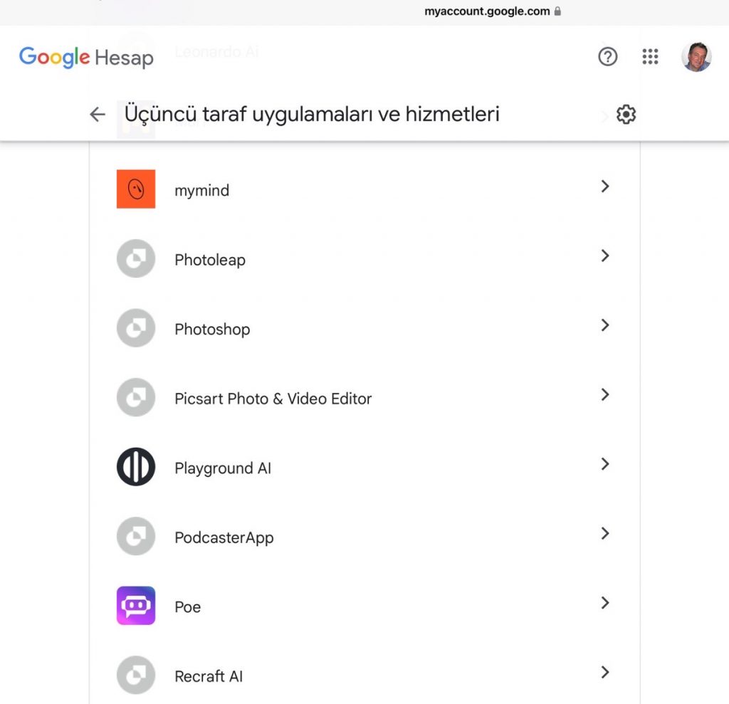 İnternet sitelerinin ya da ugygulamaların, google hesabıma benim bilerek ya da bilmeyerek verdiğim onayla hali hazırda ve belki de kullanmadığım halde erişimleri halen mevcut olduğunu gördüm.