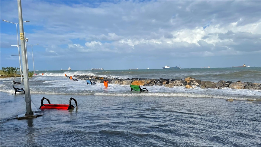 İskenderun'da fırtına sonrası deniz taştı ve ilçenin caddelerini deniz bastı.