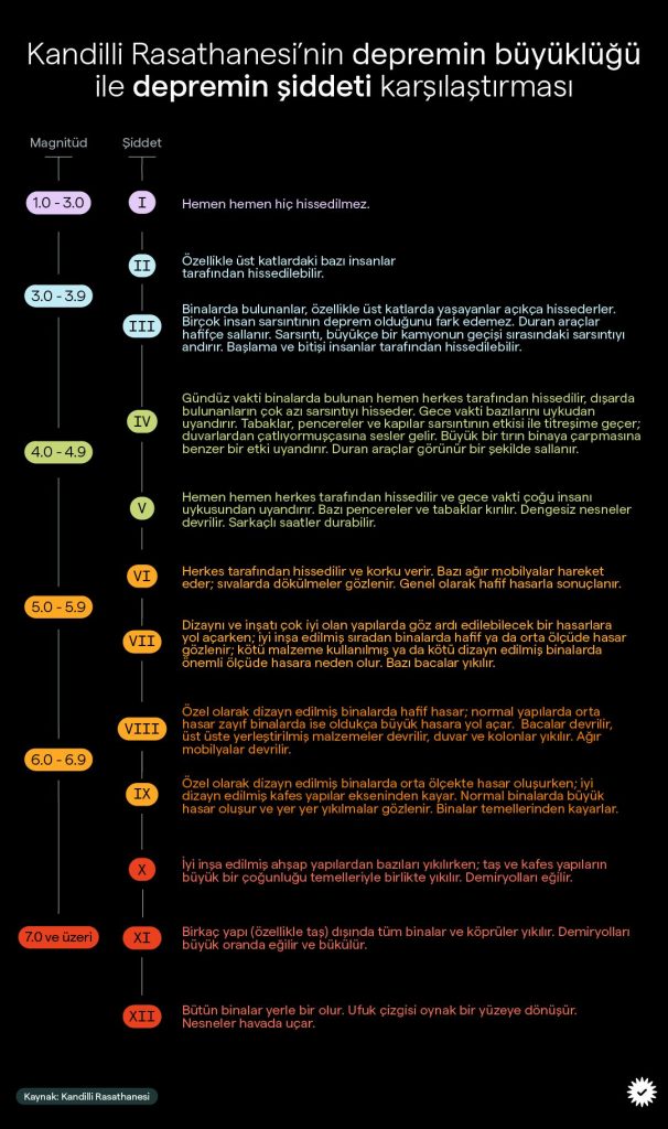 Kandilli Rasathanesi Depremin Büyüklüğü ile Şiddeti Karşılaştırması