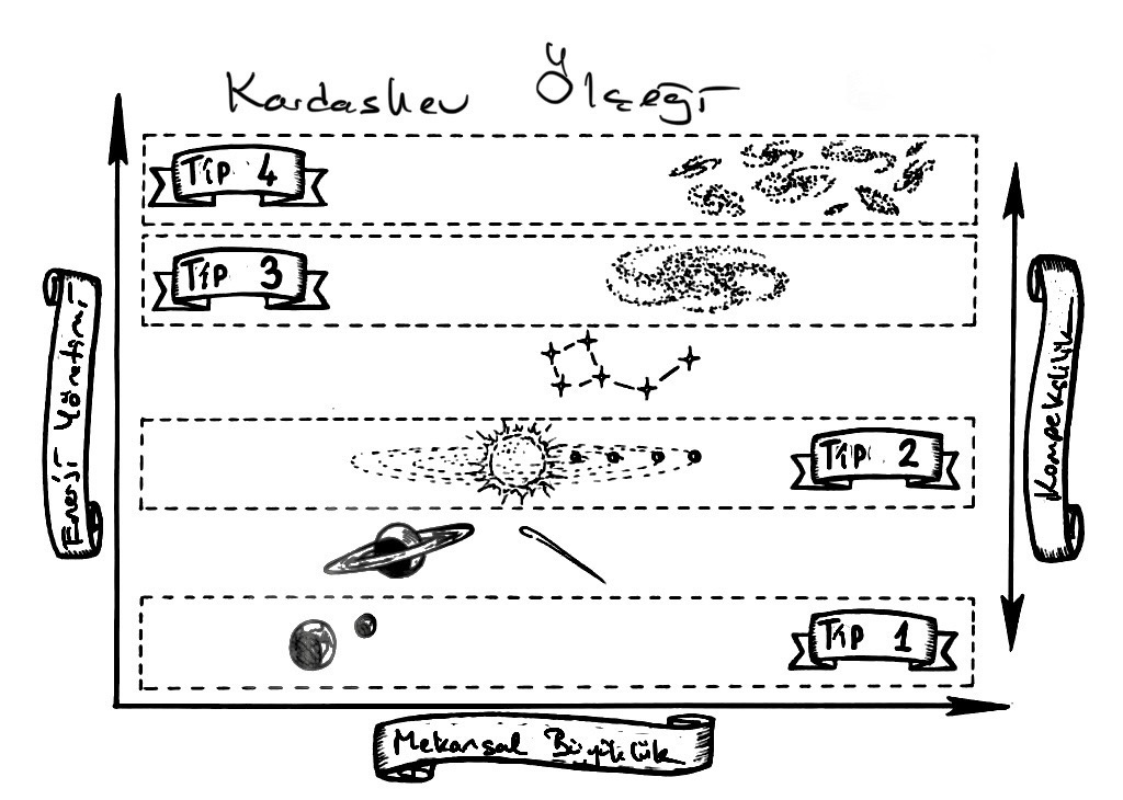 Kardashev Ölçeği, üç temel medeniyet türünü içerir: