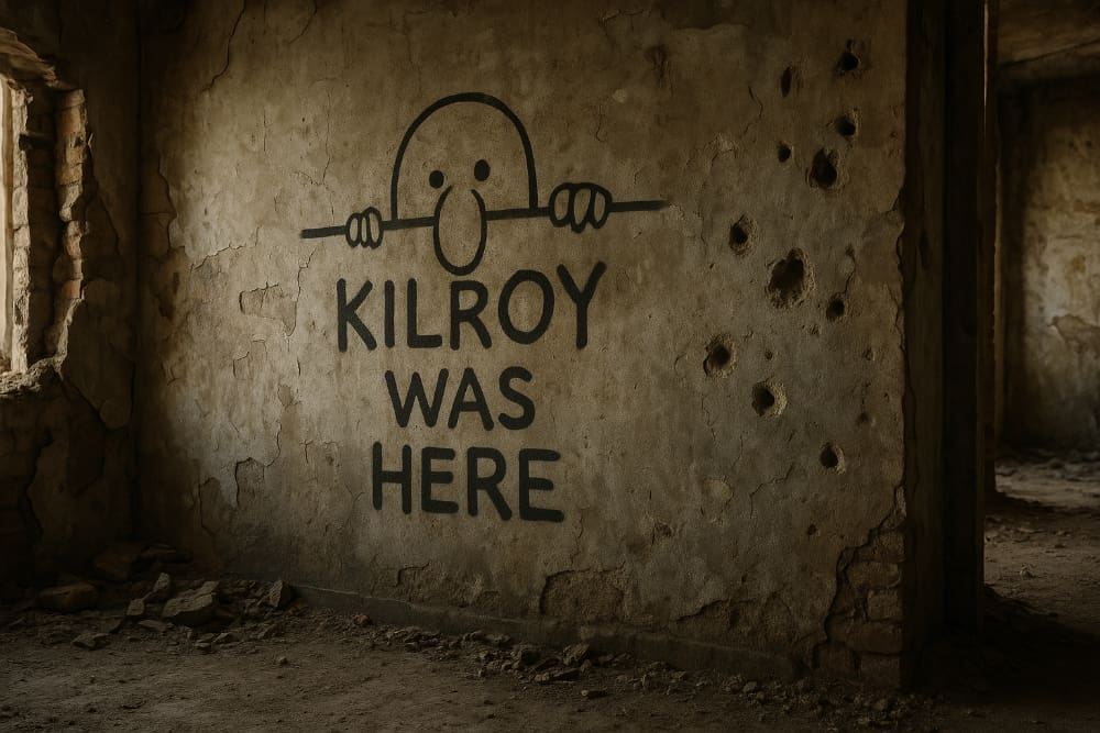 “Kilroy was here” aslında yalnızca bir savaş grafitisi değil, insanlığın evrensel bir davranış biçiminin izdüşümüdür.