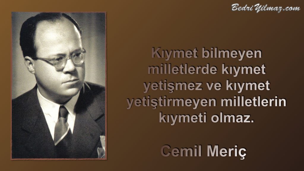 Kıymet – Cemil Meriç Bedri Yılmaz 3 yıl önce Kıymet bilmeyen milletlerde kıymet yetişmez ve kıymet yetiştirmeyen milletlerin kıymeti olmaz. Cemil Meriç Views: 18