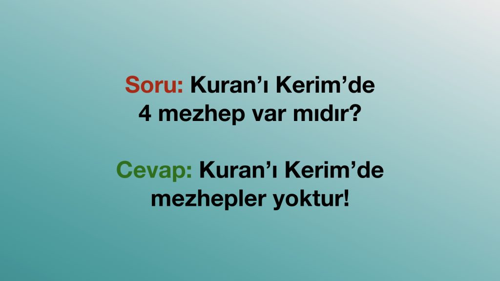Soru: Kuran’ı Kerim’de 4 mezhep var mıdır?