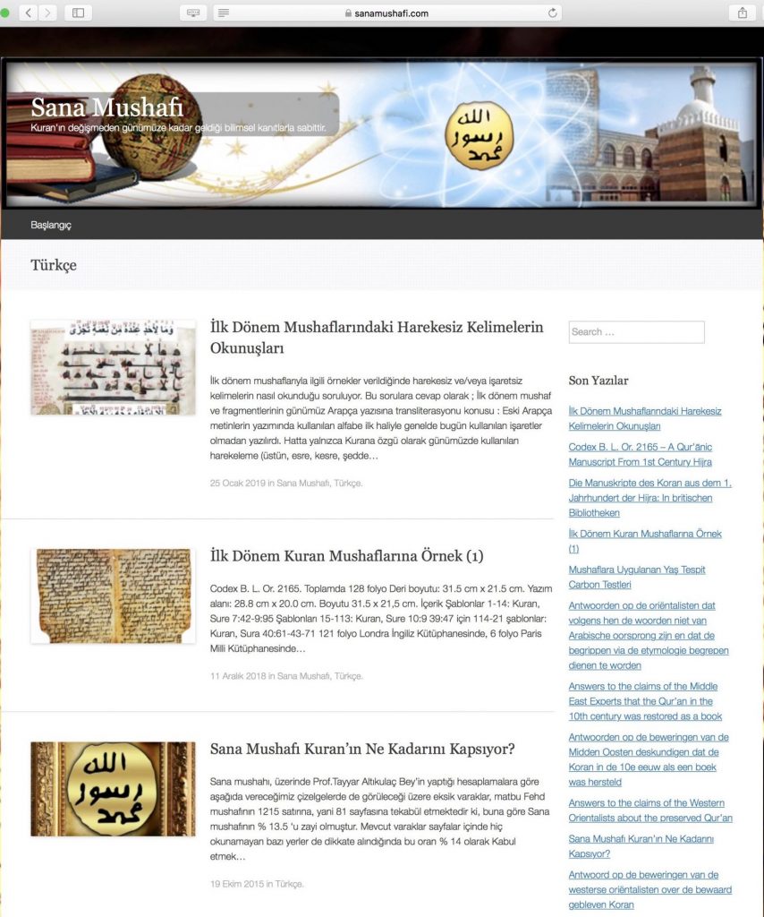 sanamushafi.com internet sitesi içinde bulunan makalelerde oryantalistlerin, Kuran'ı Kerim'i eksik ve yetersiz olduğu yönünde iftira eden gerici ve yobazlara, sahte peygamber peşinde koşan Edip Yüksel gibi bazı ayetlerinin fazla olduğunu iddia edenlere, Kuran'ı Kerim'e ve Hazreti Muhammed'e Kuran'ın Kerim'in eksik olduğunu iftira eden Şiilere, Kuran'ı Kerim Ayetlerinde sözde çelişkiler bulunduğunu iddia eden ateistlere karşı bilimsel ve arkeolojik deliller ile cevap veren bir internet sitesidir. Bu sitedeki makaleler aynı zamanda Almanca, Flemençe, İngilizce makaleler ile yayın yapmaktadır.