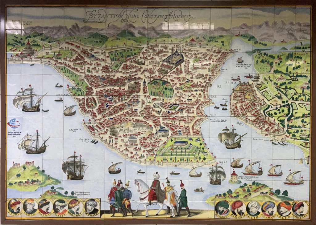 İznik Vakfı'nın Marmaray Sirkeci İstasyonu'na uyguladığı minyatür çinilerden.