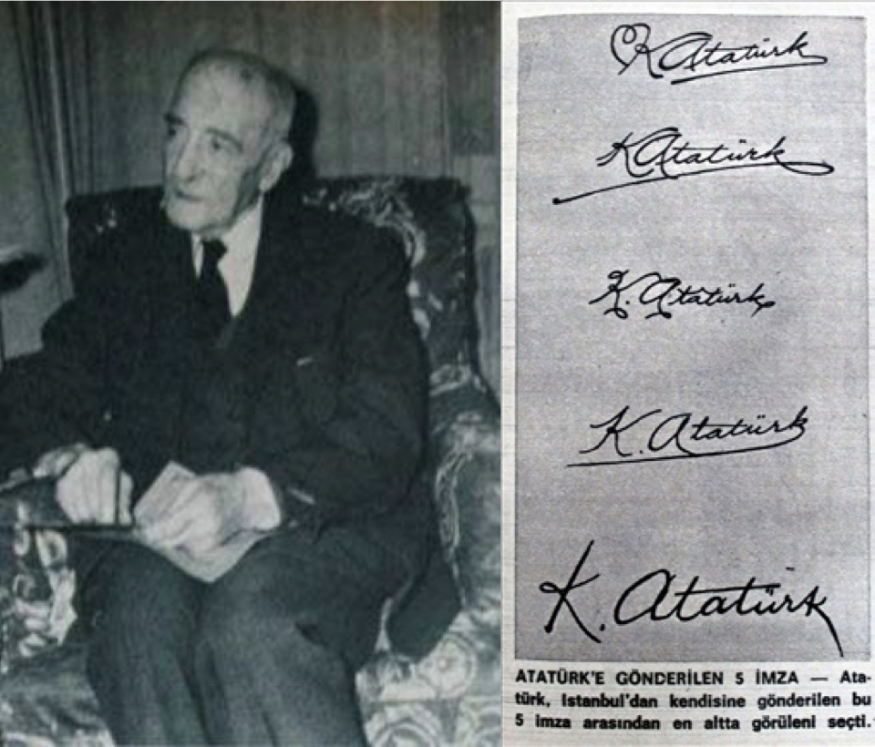 Mustafa Kemal Atatürk, hazırlanan numuneler arasından beşinci imzayı seçer.