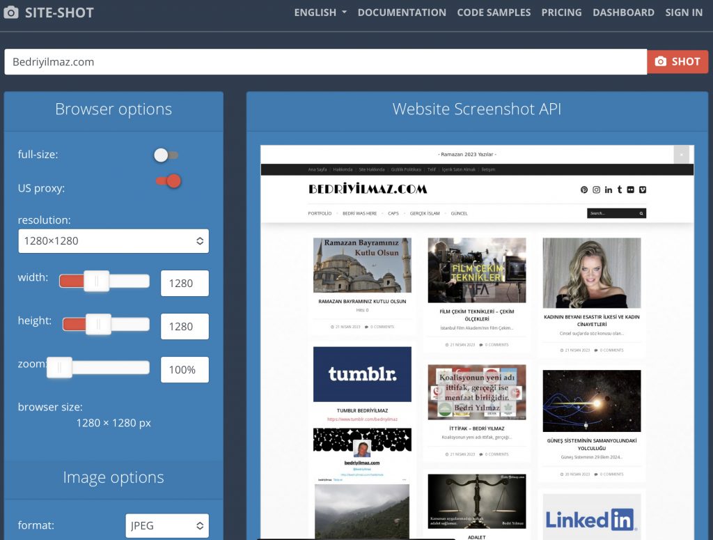 site-shot.com internet sitesi jpg ya da png olarak kaydetmek istediğiniz internet sayfasının istediğiniz ölçülerde fotorafını (ekran görüntüsünü yani screen shot) almaya yarayan faydalı bir internet sitesidir.