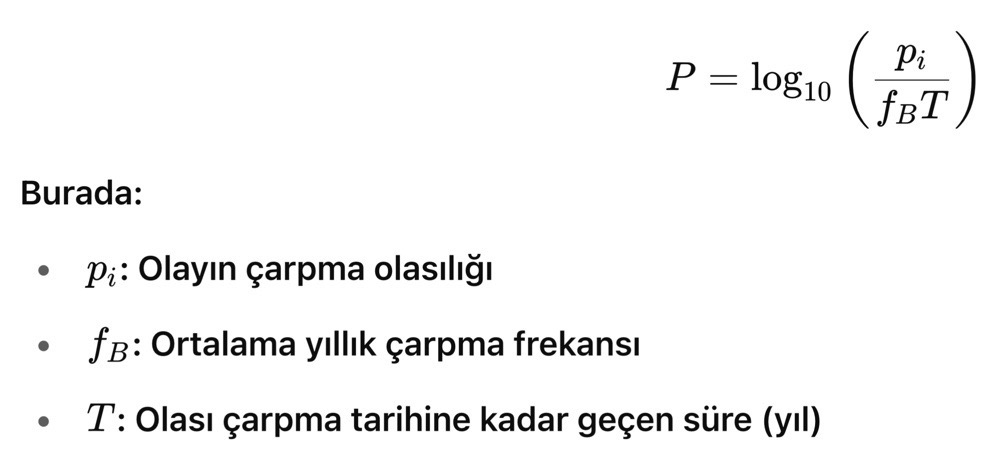 - T: Olası çarpma tarihine kadar geçen süre (yıl)