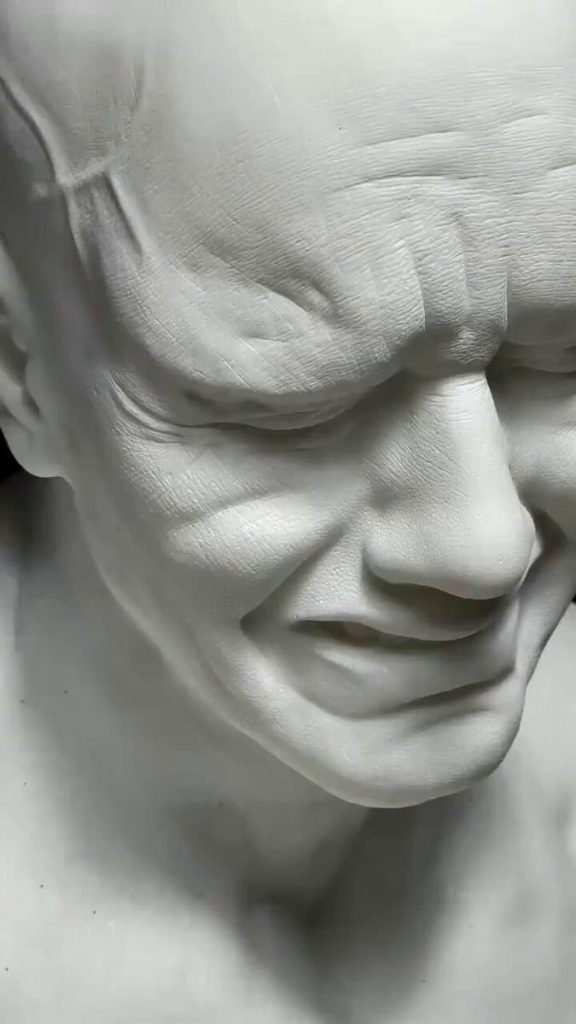 Mermerin soğukluğu ile insan ruhunun sıcaklığını, aynı anda dokunulabilir hassasiyet ve estetikle harmanladı. Detaylarda hedefim bir kusursuz gerçeklik değil, izleyicinin hem görsel hem entelektüel olarak derin bir bağ kurabileceği bir deneyim yaratmaktı.