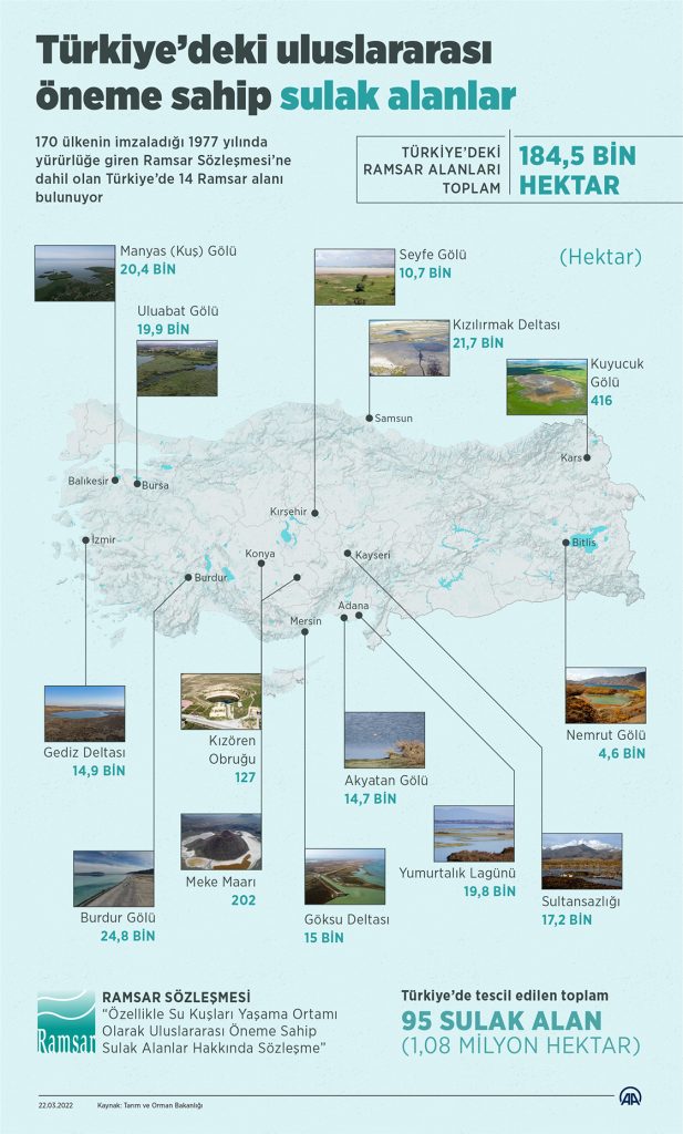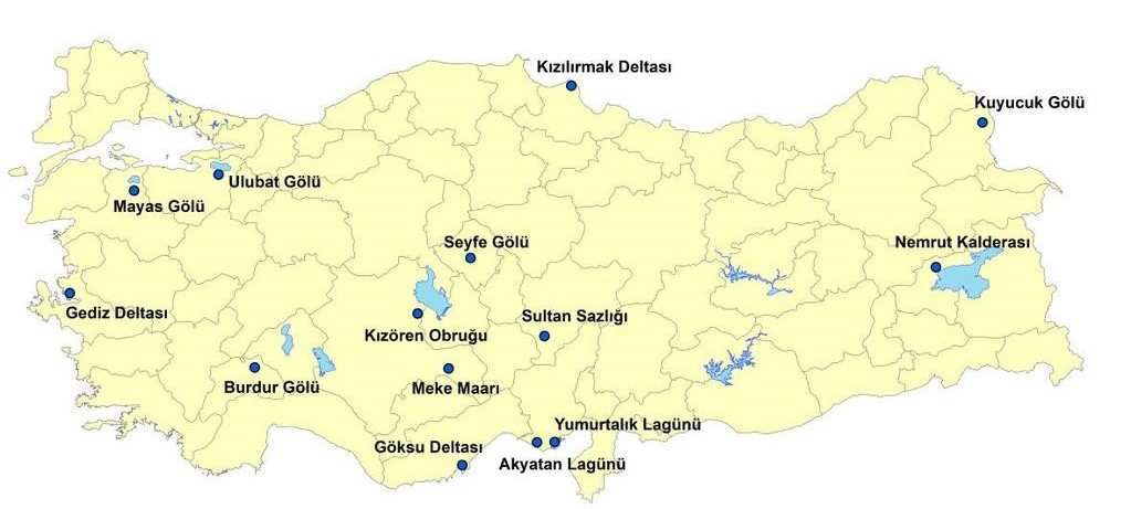 Türkiye'deki Ramsar alanları listesine ulaşabilirsiniz.