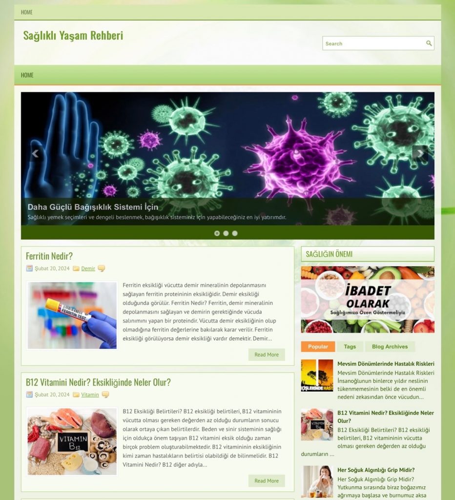 Sağlığımız İçin Herşey için blog sitesi sağlık konularında bilgi veren bir blog sitesidir. Sitede sağlıkla ilgili birçok konuda yazılar bulunmaktadır. Örneğin, ferritin eksikliği, psikiyatrik sorunlar, kulak çınlaması, cilt rengindeki solma, nedeni bilinmeyen zayıflık, çabuk yorulma, agresiflik hali, tırnaklarda hassasiyet ve kırılma, nefes darlığı, cilt kuruluğu gibi konular hakkında bilgi veren yazılar mevcuttur. Ayrıca, site beslenme, psikoloji, spor, yaşam, hareket, seyahat gibi konularda da yazılar içermektedir. Site, sağlıkla ilgili konularda bilgi edinmek isteyenler için faydalı bir kaynak olabilir.