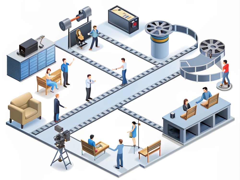 - Çekimler: Kameralar döner ve sihir başlar. Yönetmen önderliğinde oyuncular sahneleri canlandırır, ekip ise kusursuz bir çekim için özveriyle çalışır.