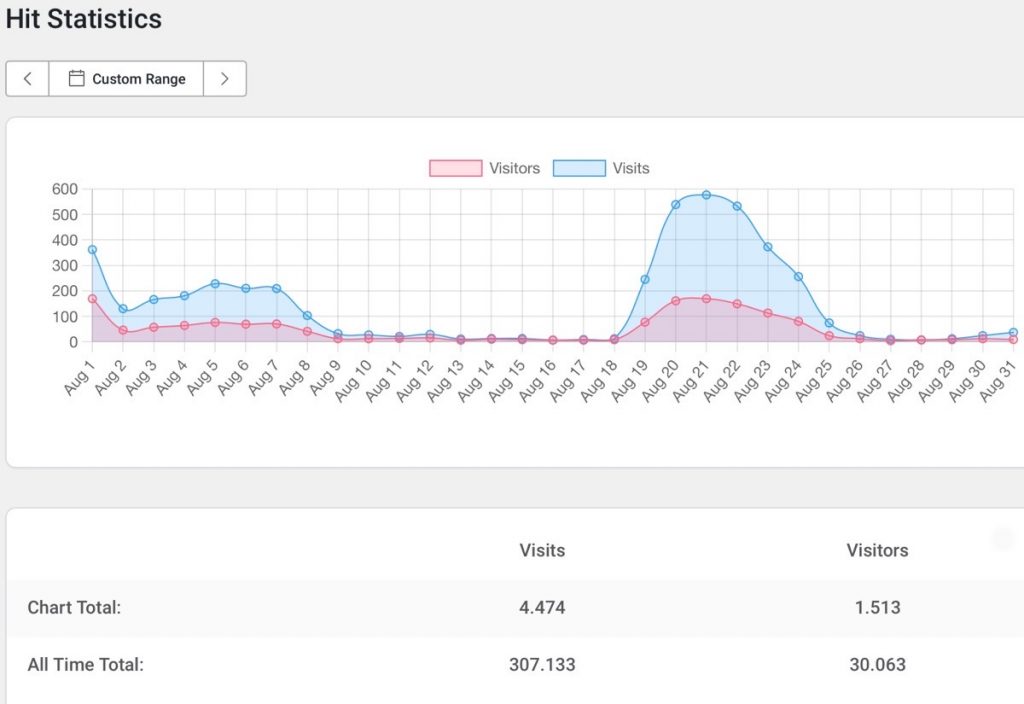 Sitemde entegre olarak çalışan bir başka istetimtik programının verilerinde ise Ağustos 2023 ayında 1513 tekil kişi 4474 sayfyı ziyaret etti.