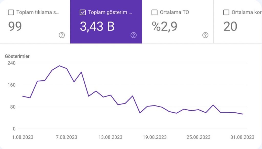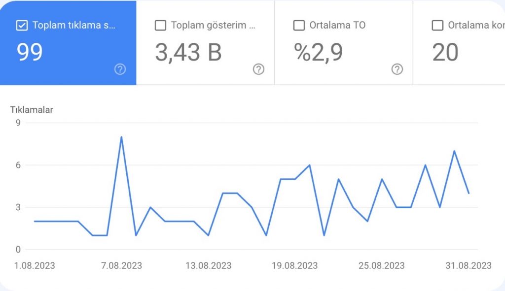 Google console verilerine göre sitemin Ağustos 2023 performansı yukardaki gibi oldu.