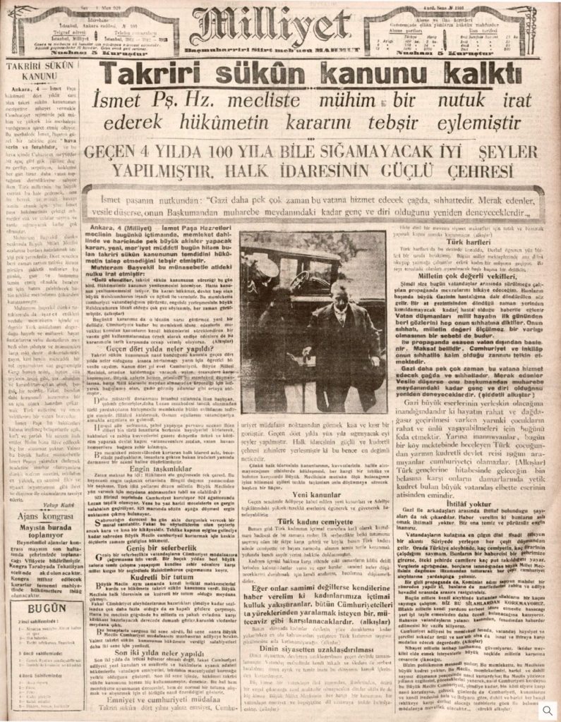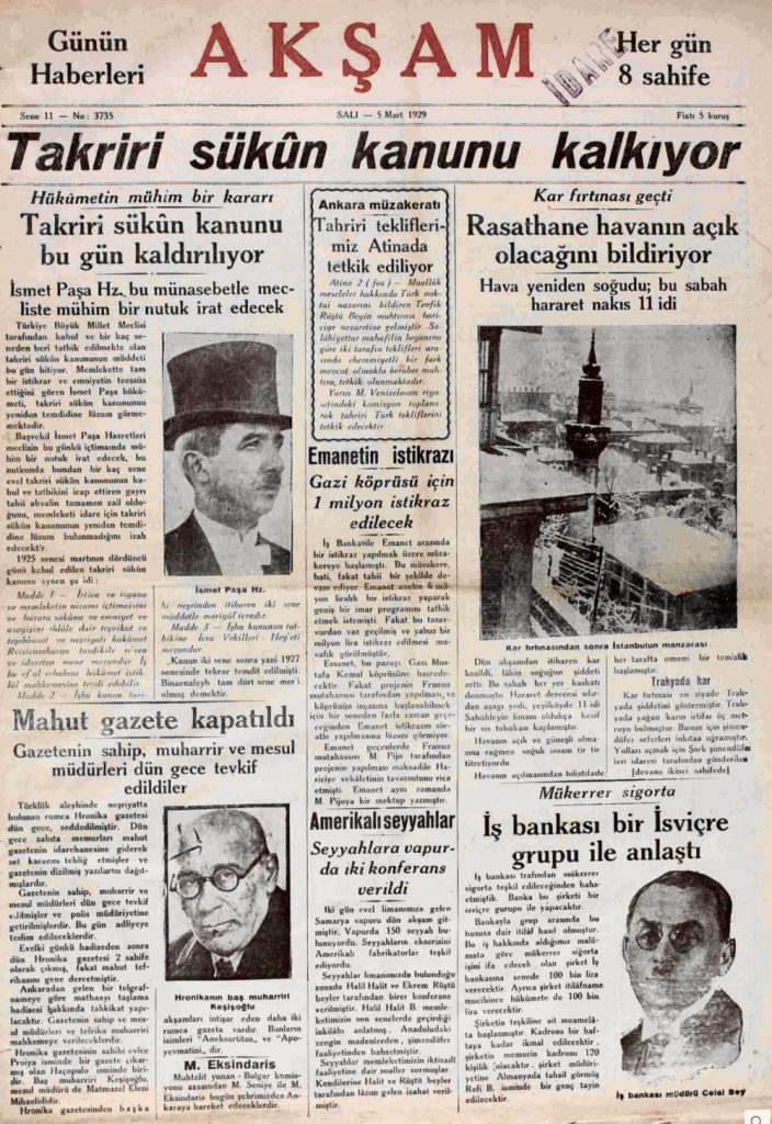 Takrir-i Sükûn Kanunu'nun uygulanmasıyla birlikte, muhalif siyasi faaliyetlerin ve cemiyetlerin yasaklanmasıyla sonuçlanmıştır. Terakkiperver Cumhuriyet Fırkası da dahil olmak üzere muhalif partiler kapatılmıştır.