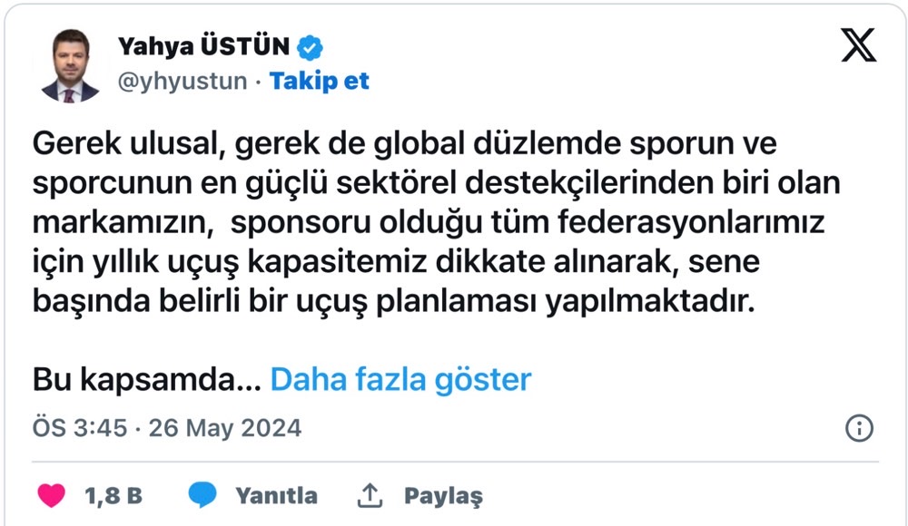 Tüm bunların yanısıra aldıkları astronomik maaşlar ile gündeme sık sık gelen Türk Hava Yolları yöneticilerinden biri olan THY Basın Müşaviri Yahya Üstün, tepkilerin ardından yaptığı açıklamada sorumluluğunun Türkiye Voleybol Federasyonu'na ait olduğunu açıklamıştı.
