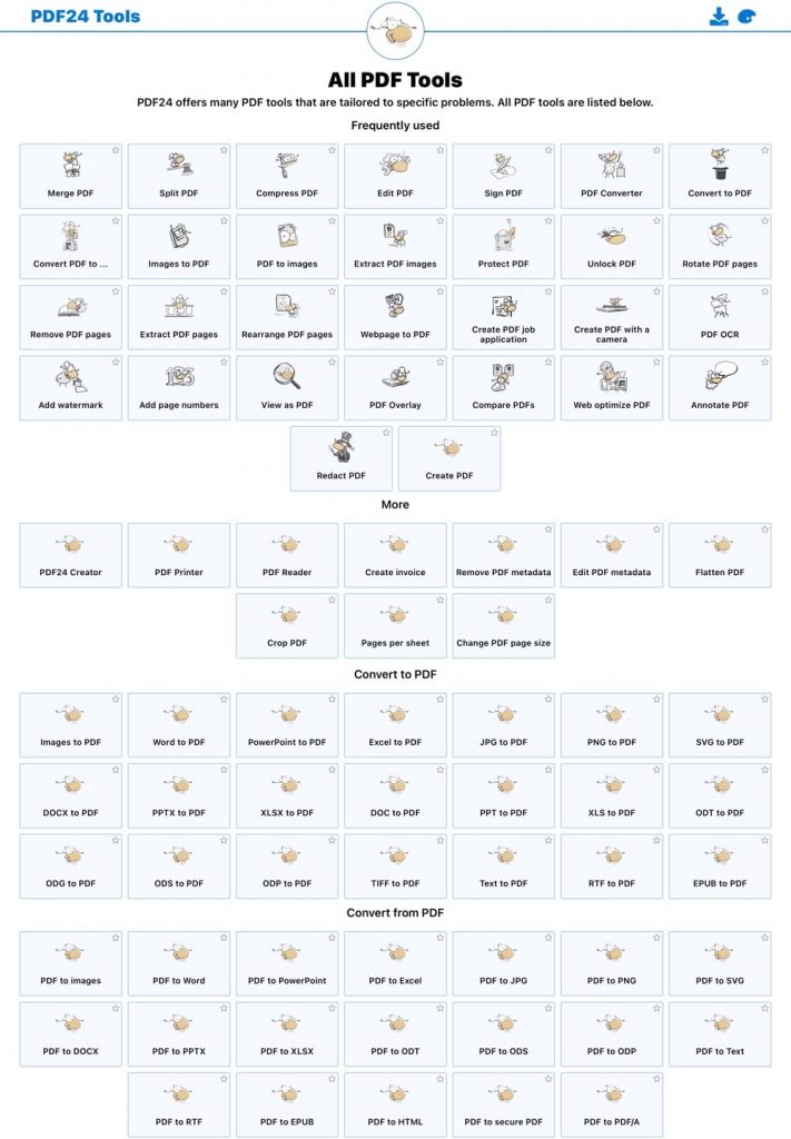 tools.pdf24.org'un sunduğu diğer bazı hizmetler şunlardır: