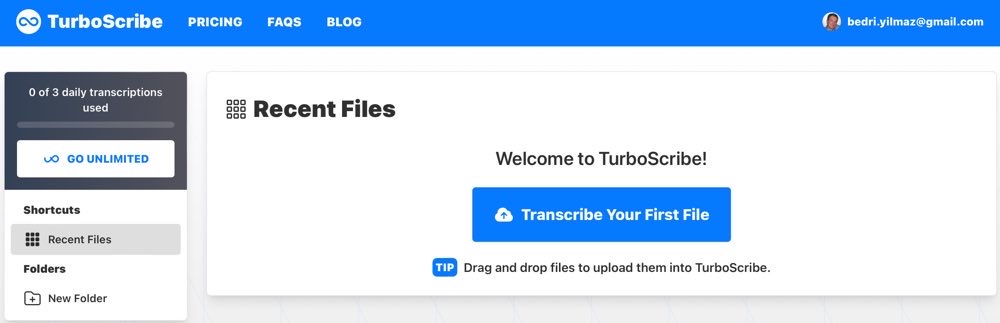 Turboscribe.ai internet sitesini ücretsiz olarak kullanabilirsiniz. Uzunluğu en fazla 30 dakika olan 3 videoyu günlük olarak ücretsiz olarak metne çeviriyor. Eğer daha uzun ya da daha çok viedo ya da ses dosyasını metne çevirmek istiyorsanız ücretli kısmını kullanabilirsiniz.