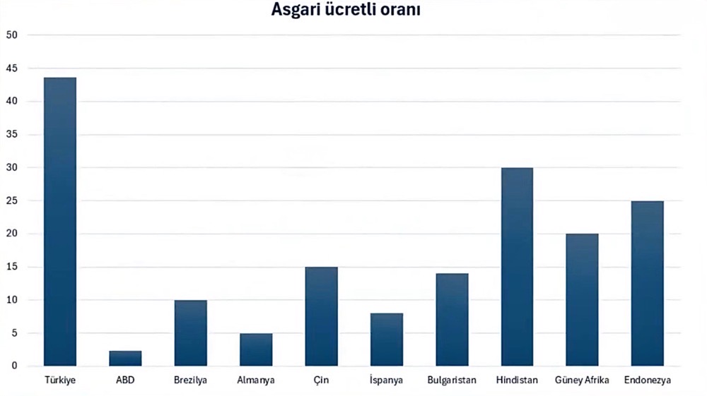 Eurostat verilerine göre, asgari ücretli oranı Avrupa'da en yüksek Slovenya'da (%15,1) kaydedilmişken, Türkiye'de bu oran 2018 yılında bile %36 seviyesindeydi. Şu anki oranlar ise bu seviyenin çok daha üzerinde seyretmektedir.