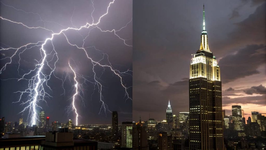 Yaklaşık 443 metre yüksekliğe sahip bu gökdelen, yılda ortalama 20 ila 25 kez yıldırım düşmesine maruz kalmaktadır (National Weather Service, 2020). - CN Tower (Toronto):
